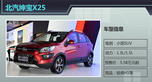 在逐步对旗下轿车产品进行完善后,北汽绅宝瞄准国内日趋火热的SUV市场。北京汽车股份有限公司总裁李峰此前表示,北京汽车今年迎来了“SUV年”,自主品牌中除了已上市的绅宝X65,三、四季度还有2-3款SUV新车发布,其中包括X55和X25。网通社从北汽绅宝官方获悉,绅宝X25在成都车展中正式发布亮相,新车搭载1.3L和1.5L发动机,手动挡车型预售5.58-6.98万元,自动挡车型预售6.78-7.68万元。
