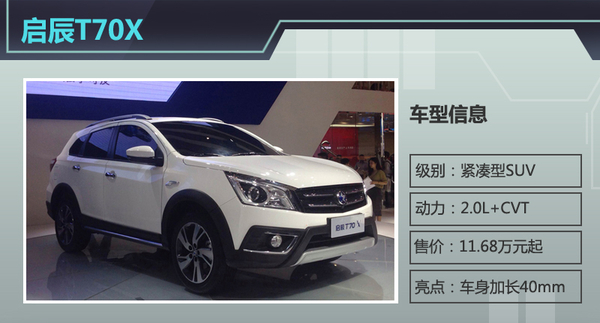 启辰2015年上半年累计销量达到59,276台,同比增长12%,其中紧凑型SUV T70销量29,560台,占启辰上半年总销量的50%左右,成为启辰旗下绝对的主力车型,而该车即将推出加长版车型,产品竞争力将得到进一步提升。T70X在车身尺寸和外观方面都得到升级,尤其是车身长度相比于T70加长40mm。启辰T70X今日在成都车展正式上市。网通社第一时间发回来现场报道:新车共推出2款车型,售价区间为11.68万-12.49万元。
