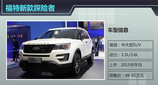 探险者是福特旗下一款主力SUV车型,曾连续25年获得美国最畅销SUV车型称号。该车在2013年进入国内汽车市场,开启了福特品牌SUV高端化的进程。随着时间推移,探险者已经到了车型改款的节点。在9月4日的成都车展,新款福特探险者正式公布预售价,该车售价区间在49——65万元之间。福特中国董事长兼首席执行官罗礼祥(John Lawler)表示:“作为福特在中国市场的旗舰SUV车型,新福特探险者集时尚大气的外观、强大动力和全方位性能于一身,为消费者带来更多创新科技和无与伦比的性能表现。”新车将于年内投放市场。