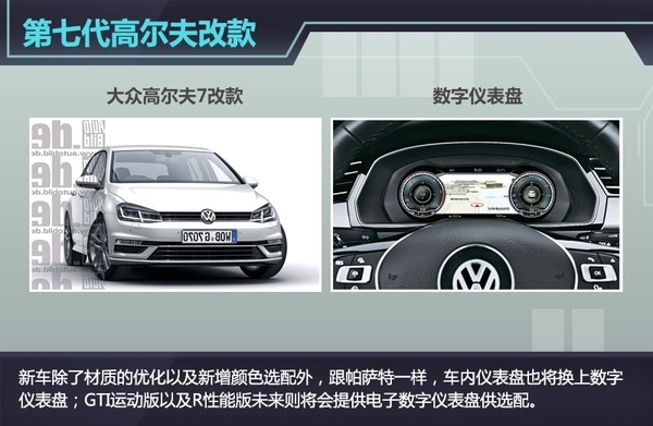车内的变化则很细微,除了材质的优化以及新增颜色选配外,跟帕萨特一样,车内仪表盘也将换上数字仪表盘;GTI运动版以及R性能版未来则将会提供电子数字仪表盘供选配。