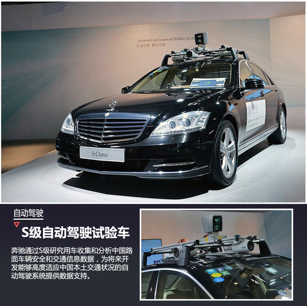 经过双方的共同努力,该合作迎来了新的成果。在今年CES亚洲电子展上,奔驰发布了S级自动驾驶试验车,通过S级研究用车收集和分析中国路面车辆安全和交通信息数据,为将来开发能够高度适应中国本土交通状况的自动驾驶系统提供数据支持,并且通过S级模拟驾驶系统,实现真实路况中的主动刹车与预警功能,切实感受多种情况下智能驾驶辅助系统对驾乘者和行人的保护。值得一提的是,奔驰目前已将该系统安装于E400L车型,用于模拟未来在中国高速公路上的自动驾驶。