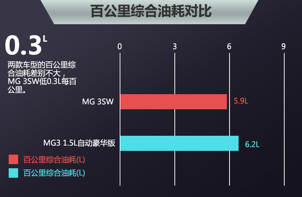 从上表不难看出,MG 3SW车型安全配置较为丰富,充分体现出厂家的诚意。由于对比产品中的后者是MG3车型的顶配车款,其安全配置更为全面。其中MG 3SW没有配备侧气帘、胎压监测和感应雨刷功能,算是个小遗憾。值得一提的是,两者均配备的弯道辅助制动、车门自动落锁、后倒车雷达等功能是实用性较强的安全配置,也能提升整车在同级产品中的竞争力。