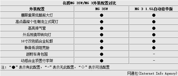 MG 3SW/MG3 1.5L自动豪华版配置对比
