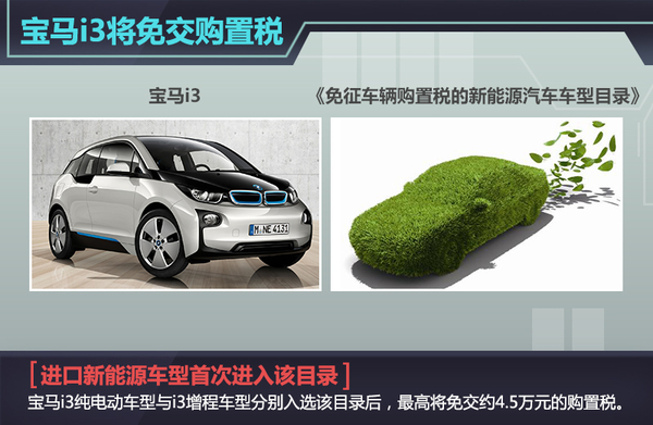 伴随着政府对于新能源车型实施补贴与扶持力度的不断加大,新能源车正被越来越多消费者所接受,但是对于进口新能源车,此前并未参与到新能源相关优惠政策之中,而这样的局面有望得到改变。近日,网通社从国家工信部获悉:宝马进口新能源车i3已正式进入新能源型录,以北京为例,现在可以通过新能源摇号指标购买宝马i3车型,并且免收车辆购置税,购车费用最高将下降近4.5万元,这一点将有效刺激宝马i3在华销量的增长。