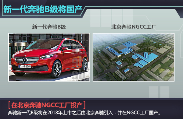 根据北京奔驰的国产计划,新一代奔驰A级和B级都将在北京奔驰NGCC工厂进行国产化生产。在动力方面,新一代B级有望与现款B级搭载相同的1.6T和2.0T涡轮增压发动机,其中前者采用两种不同动力调校。最大功率分别为90kW和115kW,最大扭矩为200N·m和250N·m。排量更大的2.0T发动机,最大功率155kW,峰值扭矩则达到了350N·m。