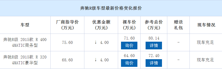 6缸V型发动机。6缸发动机采用4气门技术,提高了功率。最大扭矩分别为4 0 0牛顿米及4 8 0牛顿米,可在极大的发动机转速范围内提供迅捷的动力输出,这意味着在各种行驶条件下都具有令人印象深刻的功率储备,确保了轻松的驾驶。V6发动机另一个突出的特点是燃料利用效率很高。由于配备有四个可变凸轮轴,可以按需进行无级调节,从而能够针对行驶情况精确提供正确的油量。R 320 4MATIC输出功率为200千瓦,R 400 4MATIC输出功率为245千瓦,两款发动机都满足欧5排放标准。