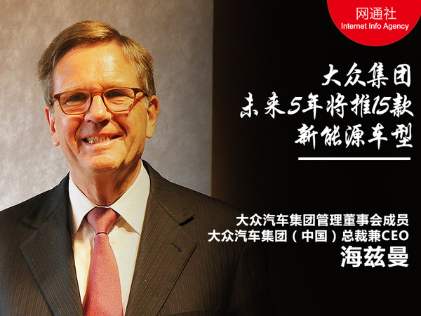 网通社2015年9月15日德国法兰克福报道,随着全球节能减排趋势的发展,新能源车以成为目前各大车企大力发展的领域之一,大众集团已在中国推出了包括electric up!和奥迪A3 e-tron在内多款采用不同新能源动力的车型。而该集团未来还将继续加大新能源技术以及产品的开发,对此大众汽车集团管理董事会成员、大众汽车集团(中国)总裁兼CEO海兹曼教授向网通社表示:我们在新能源汽车领域的战略是非常明确的,未来5年将推出15款不同的车型,并且是完全不同的,不是基于现有车型所打造的衍生产品。