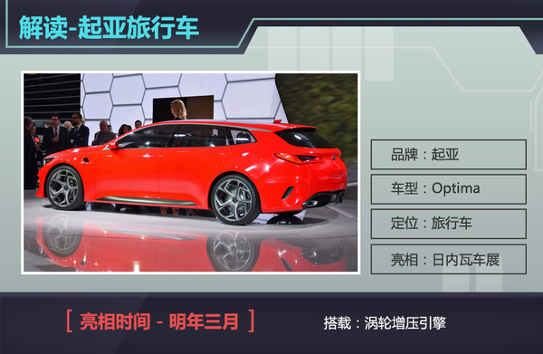 起亚全新Optima旅行车将基于SPORTSPACE概念车打造,新车不仅搭载了动力强劲的引擎,还采用了更为前卫的设计语言,从而使得这款全新旅行车具有更为动感的外观及内涵。而前置引擎前轮驱动的动力布局也将在一定程度上提升车内空间及动力传递效率,最终使动力及实用性趋向平衡。