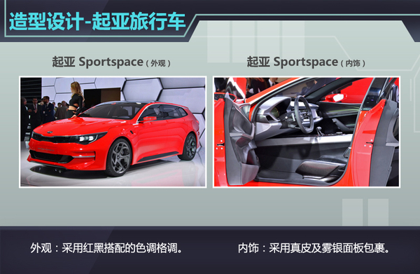 在外观及内饰方面,起亚全新Optima旅行车则采用了家族化的设计方式。就外观而言,新车采用了以红色为主色调的外观涂装,并且以黑色作为点缀,从而使其外形在视觉感受上更为运动。而在内饰设计方面,新车在真皮内饰的基础上,增加了大面积的雾银材质装饰面板,使其简洁时尚的内饰更加动感。