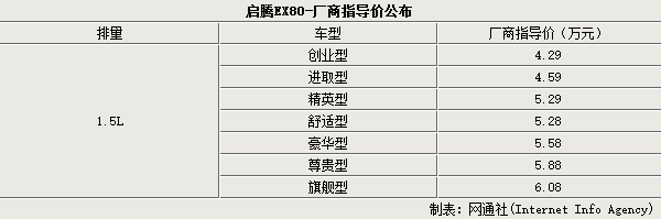 动力方面,启腾EX80将提供1.2L和1.5L DVVT两款发动机,后者的最大功率为85kW,最大扭矩150N·m,百公里综合油耗6.8L。传动系统部分,该车将配备5速手动变速箱。此外,启腾EX80底盘采用了前麦弗逊后五连杆式的悬架结构。