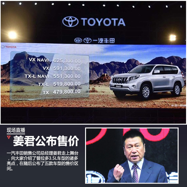 一汽丰田1-8月份新车销量达到36万辆,其中SUV车型销量7.98万辆,这主要得益于普拉多、RAV4等车型的出色表现。目前国内SUV市场持续火热,为进一步增强普拉多车型的竞争力,一汽丰田推出了3.5L车型。普拉多3.5L车型于今晚在北京正式上市,网通社第一时间发回了现场报道,新车此次共推出5款车型,售价区间为47.98-62.53万元。值得一提的是,该车取代了现款的4.0L车型,未来将与此前上市的普拉多2.7L车型共同征战市场。