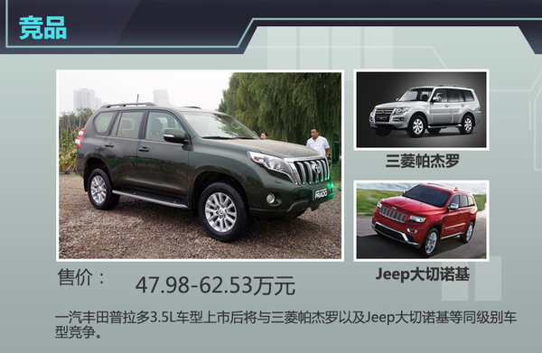 目前国内SUV市场持续火热,其中在中大型SUV细分市场三菱帕杰罗和Jeep大切诺基等车型表现出色。相比之下,普拉多价格上比Jeep大切诺基更有优势。而此前普拉多已推出2.7L车型,3.5L车型推出后,消费者将拥有更多选择,这也在很大程度上提升了该车的市场竞争力。