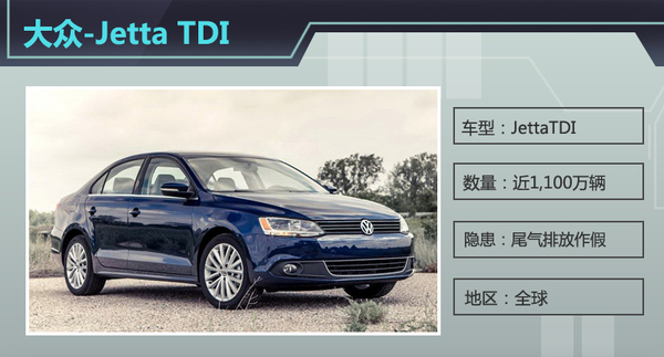 根据NHTSA公布的消息,大众集团在全球范围内召回部分柴油车,其中涉及的车辆包括:2009-2015款的大众捷达TDI;2009-2015款大众甲壳虫TDI ;2009-2015款奥迪A3 TDI ;2009-2015款大众高尔夫TDI;2014-2015款大众帕萨特TDI。截止到今天共涉及1,100万辆车在全球被召回。