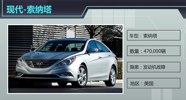 根据NHTSA公布的消息,在美国召回车型为2011至2012款索纳塔,其生产日期区间为2009年12月11日至2012年4月12日,均为搭载2.0升或2.4升汽油发动机。现代汽车美国公司表示,目前未收到因发动机部件故障而引发的事故报告,召回计划将于近期启动。
