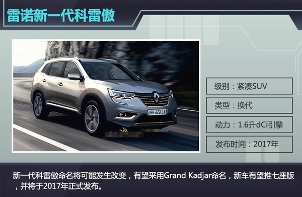 雷诺科雷傲自2009年上市以来凭借其极高的性价比赢得了众多消费者的青睐,上半年在华销量同比劲增44%创历史新高,而随着汽车产品快速的更新换代频率,换代科雷傲的推出成为雷诺日前致力于研发的车型,且其效果图曝光。网通社从美国汽车媒体Autoevolution获悉,全新一代科雷傲预计将在2017年正式发布,竞争对手瞄准日产奇骏。