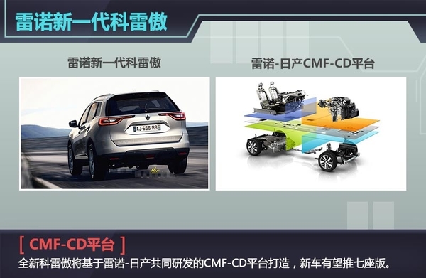 全新科雷傲将基于雷诺-日产共同研发的CMF-CD平台打造,新车有望推七座版,车内采用三排座布局。动力上,全新科雷傲将可能搭一款1.6升dCi四缸涡轮增压引擎,最大功率输出119kW。
