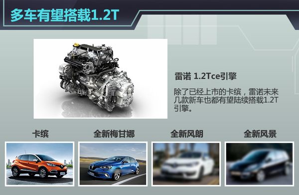 伴随全球市场排放标准的不断升级,小排量增压发动机不仅油耗低,而且拥有足够强劲的动力输出,在动力性能上甚至已经超越了“大排量”传统发动机。近日,网通社在整理雷诺未来新车规划时发现,不久前上市的卡缤是首个搭载1.2T引擎的车型,接下来雷诺将会普及1.2T发动机,未来推出的梅甘娜、风朗、风景都将陆续搭载这款小排量增压发动机。