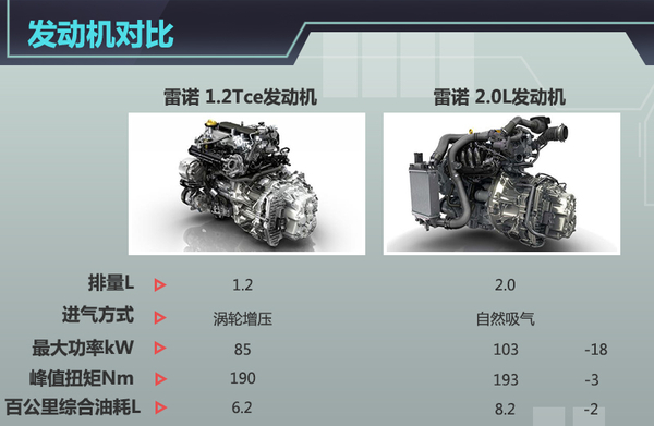 雷诺车型目前广泛使用了2.0L自然吸气发动机,该发动机最大功率为103kW,峰值扭矩193Nm。百公里综合油耗为8.2L。而卡缤使用的1.2T发动机,其最大功率为85kW,峰值扭矩则达到了190Nm,百公里综合油耗仅为6.2L。经过对比后可以发现,两款发动机排量相差0.8L,但在最大功率方面1.2T引擎仅比2.0L自然吸气发动机小17kW,峰值扭矩两者差距则几乎相同,而在油耗方面,1.2T发动机无疑更具优势,每百公里可以要节省2L燃油。