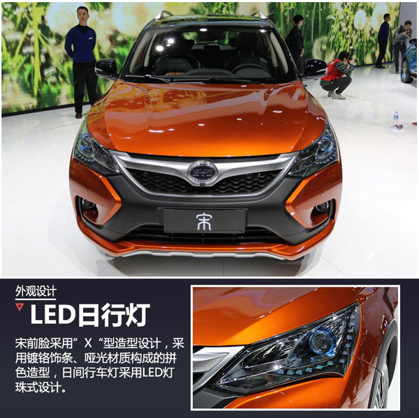 外观方面,比亚迪宋前脸呈现出X型,同时这部分是采用磨砂塑料材质,X型的下方两侧在雾灯位置形成了上卷的造型,造型带有中国传统文化中“祥云”的特点。车身侧面的线条流畅同时异色涂装从大角度的A柱开始一直延伸到车尾的扰流板,结合上扬的双腰线和车顶行李架设计,整体造型十分出彩。