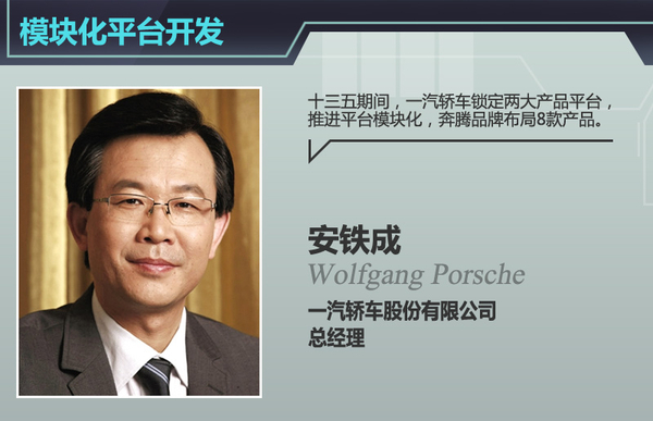 2016年作为“十三五”的开局之年,奔腾品牌将迎来品牌十周年的诞辰。对此,一汽轿车股份有限公司总经理安铁成于日前在接受网通社采访时表示:“奔腾品牌将在十三五期间进入快速增长期”。安铁成还表示:“十三五期间,一汽轿车将锁定两大产品平台,推进平台模块化开发战略,奔腾品牌将布局8款产品,覆盖从A到B级的轿车、从A0到A级的SUV及MPV细分市场。”