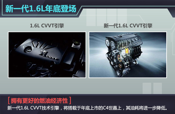 目前,首款“换代机”新一代1.6L CVVT技术发动机,将于今年底到明年初适配新车型投放,首款搭载的车型将是东风雪铁龙C4世嘉,该车有望在年底前的广州车展上正式上市。新一代1.6L CVVT技术发动机,通过低摩擦涂层组件等技术升级和应用,将保证动力和性能进一步优化的同时,可实现综合油耗降低9%以上,使其拥有更出色的燃油经济性。