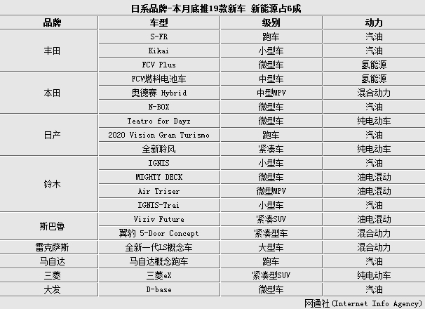 即将于10月28日开幕的东京车展上,丰田、本田、日产等日系车企计划发布多款新车,在家门口展示自己的得意之作。网通社梳理相关信息后发现,九大日系品牌将在本届东京车展集中推出19款全球首发车,其中包括11款新能源车,占比近六成%。