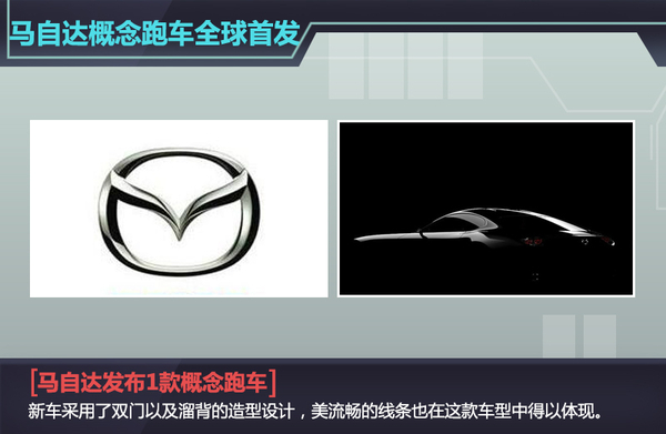 马自达将在本届东京车展中全球首发一款概念跑车,新车采用了双门以及溜背的造型设计,同时优美流畅的线条也在这款车型中得以体现。由于这是一款概念车型,因此很有可能采用了比较夸张的设计手法,以及马自达品牌超前的设计语言。