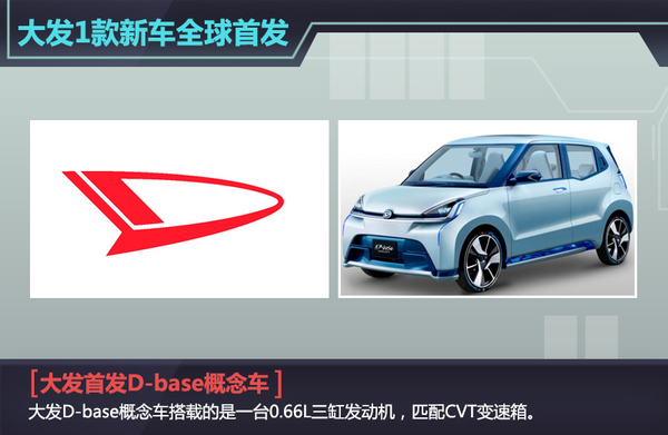 大发是日本一家主要生产微型车的品牌,本次首发的D-base概念车是典型的K-car,其排量为0.66L。外观方面,D-base概念车的外形线条硬朗,车身比较方正,采用实用的四门设计。其前脸尤其是下格栅,与丰田的家族设计颇为相似。该车车身尺寸的长宽高为3400mm/1480mm/1490mm。动力方面,该车搭载的是一台0.66L三缸发动机,匹配CVT变速箱,动力输出平顺,而且节能。该车采用轻量化设计,并配有制动能力回收系统等技术,燃油经济性十分出色,百公里油耗约为3L。