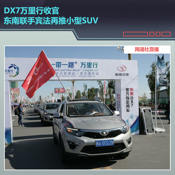网通社2015年10月19日意大利米兰报道东南汽车旗下紧凑型SUV——DX7已于今年7月底正式上市,该车是由东南汽车和意大利著名设计公司宾尼法利纳(宾法)合作设计而来,颇具品质的外观及内饰造型为其市场竞争力加分不少。10月19日,“一带一路”万里行东南DX7车队到达意大利米兰,走进米兰世博会中国馆,“一带一路”万里行完美收官。在活动现场,网通社从东南汽车官方获悉,东南和宾法合作的下一款新车型研发代码为DX3,是继DX7之后的第二款SUV车型,定位小型SUV,其造型更加锋利和年轻派,运用了年轻人喜欢的设计元素,将于2016年正式上市。