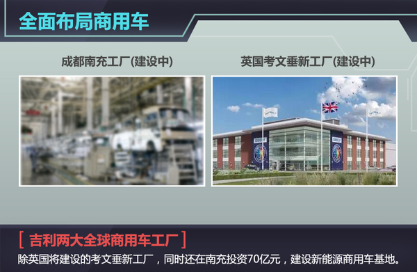 吉利汽车今年在四川南充开工建设了首个新能源商用车项目,在商用车领域迈出了关键一步。与此同时,吉利汽车也开始在海外布局新能源商用车项目。日前,网通社从吉利汽车官方获悉:吉利在英国投资5000万英镑(约合4.9亿元人民币),建设前沿技术研发中心和新工厂,研发和生产9种不同车型,包括集团将推出的轻量化新能源商用车。值得一提是,未来在英国工厂生产的多款商用车,与吉利在中国南充建设的新能源商用车基地所投产的车型相同,都将出口全球市场。