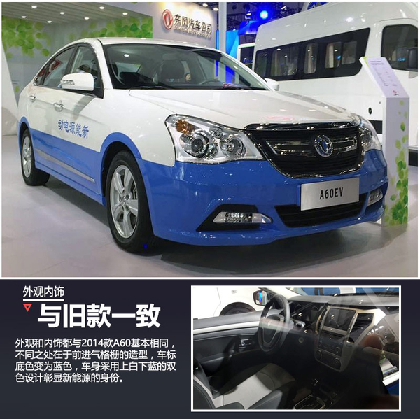 外观方面,A60EV的外观与2014款A60基本相同,并没有与刚上市的新款A60保持一致。与普通版车型的不同之处在于前进气格栅的造型,没有采用与普通版车型相同的条幅式设计,并且车标底色变为蓝色,车身也采用上白下蓝的双色设计,以彰显自己新能源的身份。