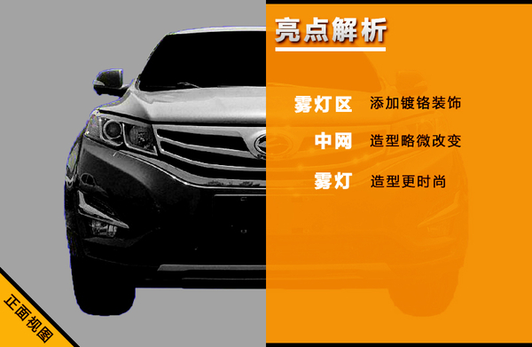 陆风X5 Plus作为陆风X5的升级版推出,外观进行了多处改动,相比现款车型更加时尚,充满运动感。前进气格栅依旧全部采用镀铬处理,但中间的横条幅造型与现款不同,并且格栅最下方的边两侧一直延伸插入前大灯的边缘,结合更加自然。下方雾灯区域加入了“L”状的镀铬装饰,雾灯也不再是老气的圆形,并且增加了LED日间行车灯,使前脸整体看起来更加时尚运动。
