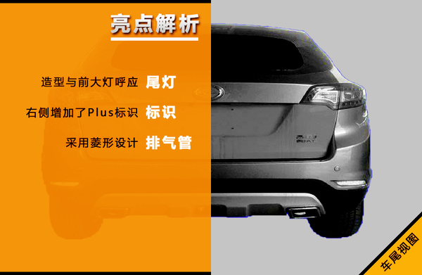 同样,车身尾部也基本上未做改变,仅是在车尾右侧加上了Plus的标识来表明自己的身份。尾灯造型与前大灯相呼应,灯组内部在边缘设置有LED灯组。下方配置了银色护板,两侧的排气口依旧采用的是菱形的设计。