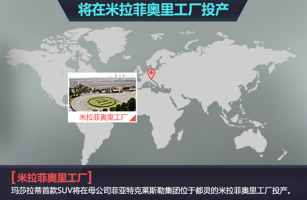 米拉菲奥里(Mirafiori)是玛莎拉蒂母公司菲亚特克莱斯勒集团(FAC)位于意大利都灵的工厂,该工厂拥有5,000名员工,产能每年可达30万辆。菲亚特CEO马尔乔内曾表示,“为了保障米拉菲奥里工厂的未来,菲亚特将在该工厂投产玛莎拉蒂车型”。SUV作为玛莎拉蒂全球战略中最重要的产品,也被列入米拉菲奥里工厂的生产序列。Levante配备了玛莎拉蒂Q4全时四驱系统,并且悬挂系统、底盘设定、变速箱等都会经过精心的调校,以体现品牌传统的运动性和操控性。