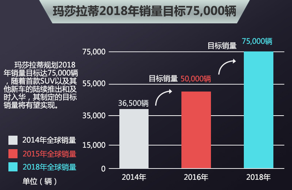 根据玛莎拉蒂公布的规划,2015年全球销量目标为50,000辆,2018年要达到75,000辆。Levante作为玛莎拉蒂首款SUV车型,推出后有望进一步推动市场销量。随着首款SUV车型以及其他新车的陆续推出,未来的5年产品计划有望提前实现。