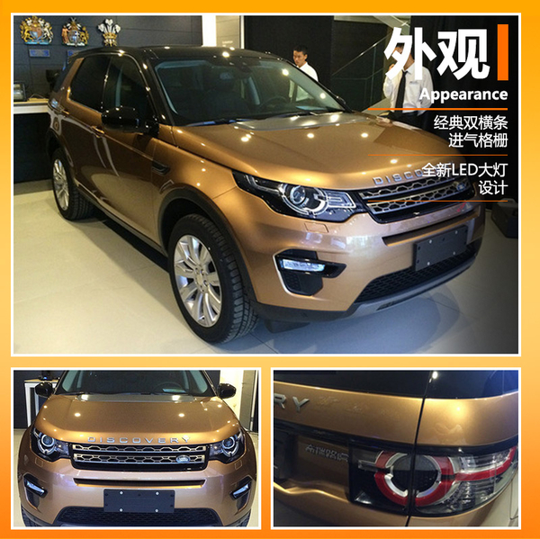 国产发现神行外观方面与进口版保持一致。首先,该车采用了路虎全新家族式设计语言,前进气格栅采用经典的双横条幅设计,相比神行者2更加运动。同时,车辆前大灯组采用全新的样式,并融入了LED光源,在避免了开/关延时的同时更为节能。此外,车辆前保险杠造型非常硬派,两侧配备有LED日间行车灯,还在保险杠下方安排了银色防擦护板。