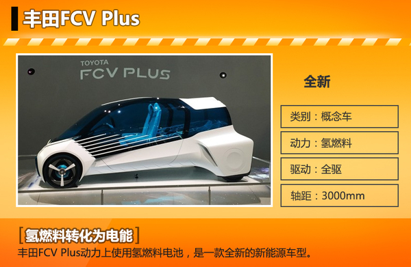 丰田在本次的东京车展中共有四款概念车全球首发,其中FCV Plus是一款能够将氢燃料转化为电能并加以利用的新能源车,该车的燃料电池堆安装在前桥之间,氢燃料箱则置于后座下方,另外丰田还为该车的每个车轮配备了一台独立的轮毂电机,此举也有利于提升座舱空间利用率。FCV Plus为了营造未来感和科技感,整个车身中透明玻璃占有较大比例。FCV Plus的长宽高分别达到3800mm/1750mm/1540mm,轴距则为3000mm。座舱则采用四座布局,前排座椅较后排座椅尺寸更大。