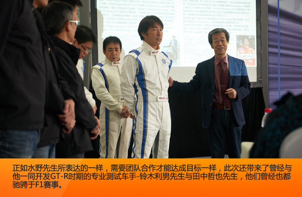 水野先生还带来了曾经与他一同开发GT-R时期的专业测试车手-铃木利男先生与田中哲也先生,曾经也都是驰骋于F1赛事的车手。