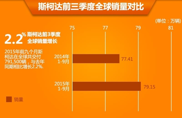 斯柯达汽车公司刚刚公布了在2015年前九个月全球销量数据,斯柯达汽车的交付量稳中有升,达到791,500辆,与去年同期的774,100辆相比,实现了2.2%的微弱增长。斯柯达品牌在欧洲地区一直有着不俗的销量,但近年来中国、俄罗斯和东欧地区增长同样迅速,而从目前的局面来看,中国正成为斯柯达未来发展的重中之重。