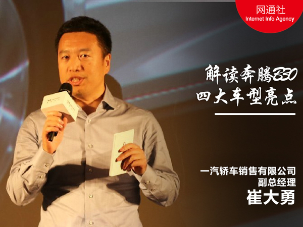 今年上海国际车展上,一汽奔腾携全新A级车“A-CLASS”首发亮相,而后一汽奔腾宣布将其正式命名为奔腾B30。从车型命名来看,奔腾B30为奔腾轿车旗下的全新入门版车型,继承了奔腾品牌造车品质,同时还融入了更多符合时下潮流趋势的设计语言。在B30发布会现场一汽轿车销售有限公司副总经理崔大勇为大家解读了奔腾B30的四大亮点。