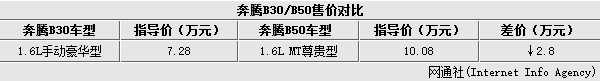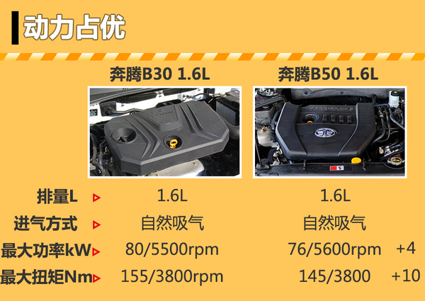 奔腾B30 1.6L手动豪华型/奔腾B50 1.6L MT尊贵型配置对比