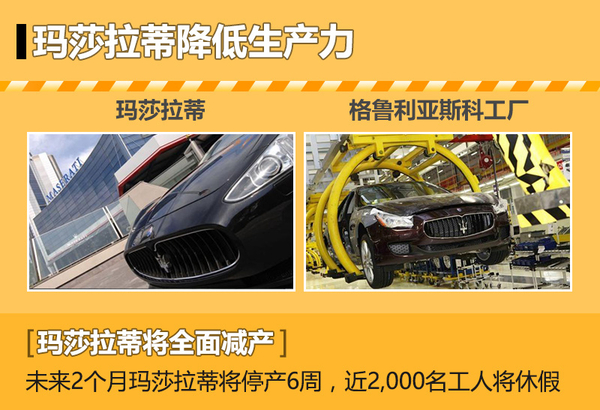 在过去的2014年,玛莎拉蒂全球销量达到了3.65万辆,同比2013年增长136%,这其中中国市场更是以148%的增长,成为玛莎拉蒂第二大市场。在进入今年后,玛莎拉蒂并未保持快速增长的趋势。近日,网通社从玛莎拉蒂公布的信息获悉:今年第二季度玛莎拉蒂新车交付量同比下滑13%,第三季度更是下滑22%。在这样的局面下,玛莎拉蒂意大利的格鲁利亚斯科工厂将停产,以减少因销量增长放缓而带来的库存危机。