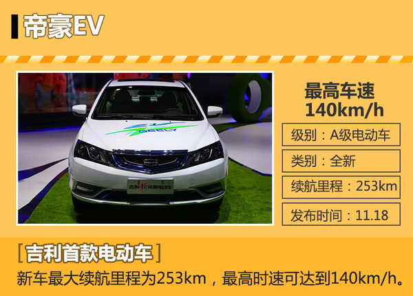 据最新数据显示,吉利汽车在今年前10个月共销售整车40.48万辆,较去年同期增长27%,已完成今年目标销量的九成。日前,网通社从吉利汽车官方获悉:吉利将于本月20日开幕的2015年广州国际车展上携旗下7款新车亮相,其中首款电动车帝豪EV无疑是本届车展吉利的最大亮点。值得一提的是,备受期待的全新SUV“吉利博越”并不在此份参展名单中。