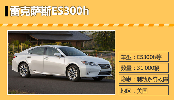 | 丰田 | Avalon | 31,000辆 | 2013年至2015年款 | 制动系统故障 |