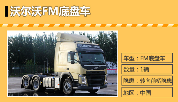 沃尔沃FM底盘车转向前桥隐患国内召回