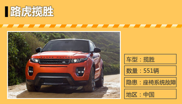 | 路虎 | 揽胜 | 74辆 | 2015年05月22日至2015年06月10日 | 座椅系统故障 |