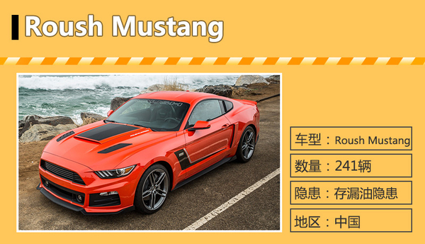 | 福特 | Roush Mustang | 241辆 | 2014年2月14日至2015年2月10日 | 存在漏油隐患 |