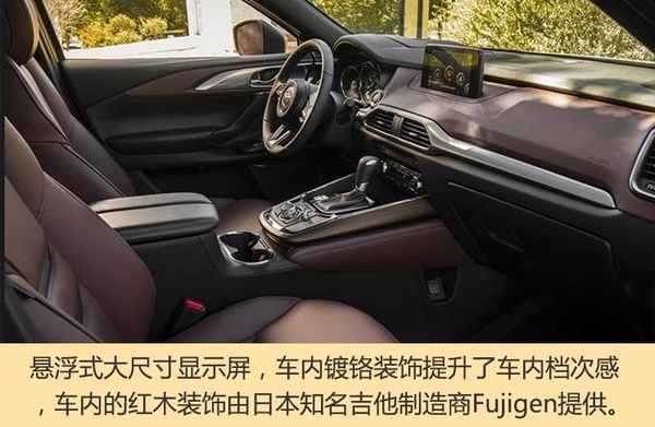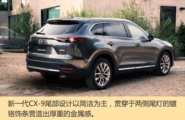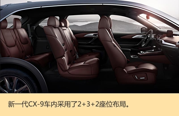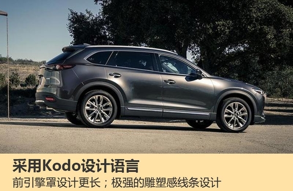 据马自达总工程师Masashi Otsuka称:“新一代CX-9宽大的空间将成为有孩子的家庭优选车型,外观设计的进化和操控性能的提升将能满足更多消费者的需求”。外观上,新一代CX-9采用了Kodo设计语言,前大灯细长造型更犀利,前引擎罩设计更长,车身极具雕塑感的线条设计使得新车外观更运动。车内配置极其豪华,大尺寸悬浮式显示屏,车内采用了2+3+2座位布局。
