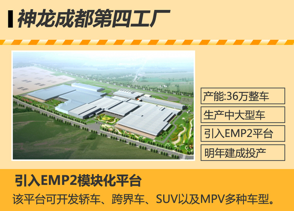 神龙成都第四工厂将于明年建成投产,总产能达到36万辆整车。该工厂引入了PSA集团最新的EMP2模块化平台。该模块化平台主要开发中大型级别车,具有广泛的适用性,在车型级别、车身尺寸、车身配置、动力总成都可以根据不同车型的需求进行调整,可开发轿车、跨界车、SUV以及MPV多种车型,同时也包括插电式混合动力车型。明年工厂建成后,将生产包括东风雪铁龙、东风标致以及东风三个品牌的车型。未来东风雪铁龙更多的高端车型也将从这里驶出。