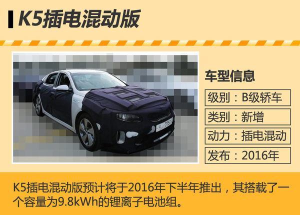 目前起亚共有三款新能源车型,分别是K5油电混动版、K7油电混动版和秀尔纯电动版。其中K5混动版搭载一款名为Nu 2.0 MPI的混合动力专用发动机,最大功率110kW,最大扭矩则为180Nm,而与其搭配的永磁同步电动机最大功率为35kW,最大扭矩为205Nm,这套混动系统动力输出强劲,油耗表现更是非常出色,K5混动版百公里综合油耗仅为5.4L。到2020年起亚旗下新能源车型将增加至11款,其产品竞争力将得到大幅提升。